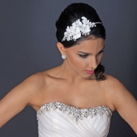 The details of this modern headpiece is decorated with lovely white lace floral with diamond white and rhinestones accent in a silver setting. This beautiful side accented headband is a perfect accessory for weddings, proms, homecomings or any elegant affairs!