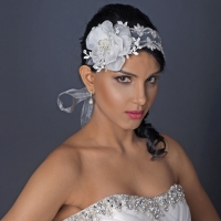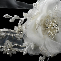 Adore your wedding day look with this elegant ribbon bridal headband. This accessory is composed of an ivory ribbon lace that carefully handcrafts a dainty flower, the side accenting feature. Additionally, unique beading, pearls and sparkling rhinestones illuminate this headpiece with breathtaking detail that is just simply unforgettable. This can also be worn around the waste to accentuate the wedding dress itself as a bridal belt. There is 95" of ribbon that can be used in its entirety or neatly shortened to desired length. Size: 95" long Ribbon x 1" wide. Flower Décor measures 10.5" wide x 4.5" high.